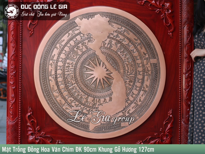 Tranh mặt trống đồng treo tường chế tác tại Lê Gia có đường nét tinh xảo, hoa văn rõ nét. Nhờ vào đội ngũ nghệ nhân chuyên nghiệp, giàu kinh nghiệm với tay nghề cao. Chất liệu chọn lọc tinh túy, chế tạo cẩn trọng, tỉ mỉ. Một “bức họa đồ” dải chữ S sống động như thật. Đó là quê hương, là dân tộc, là tình yêu thổi hồn vào từng nét chạm trổ.